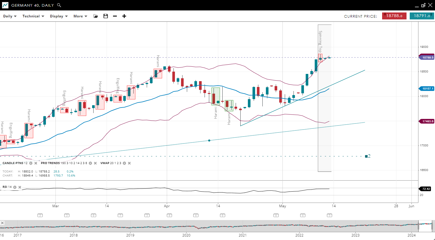 | Germany 40 | Bullish | Impulsive | 18,789 | 18,157 | 17,493 | 18,790 | 72 |