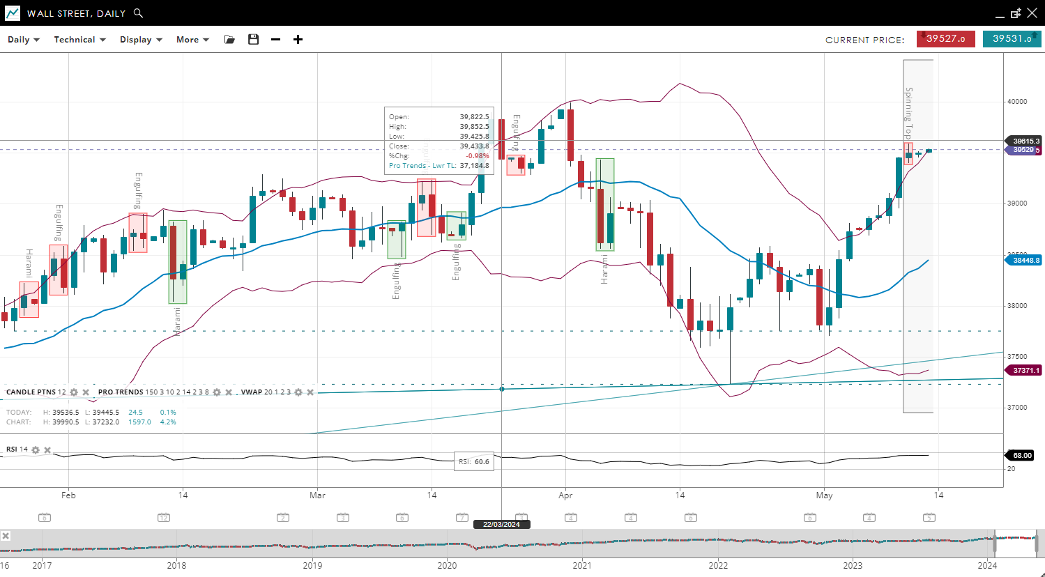 | Wall Street | Bullish | Impulsive | 39,529 | 38,448 | 37,371 | 39,529 | 68 |