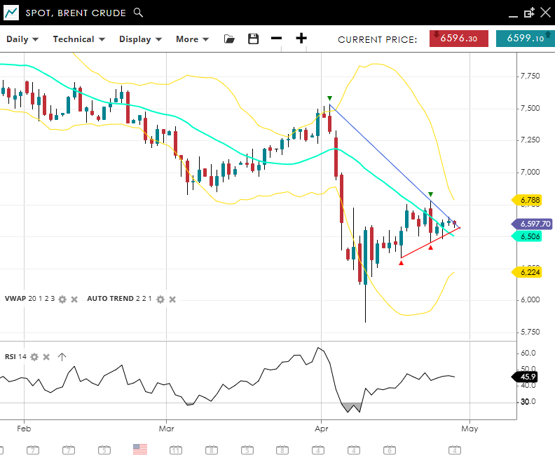 Brent Crude | Bearish | Correction | 6,599 | 6,506 | 6,224 | 6,788 | 45.9 |