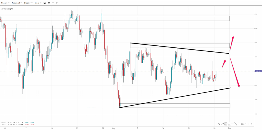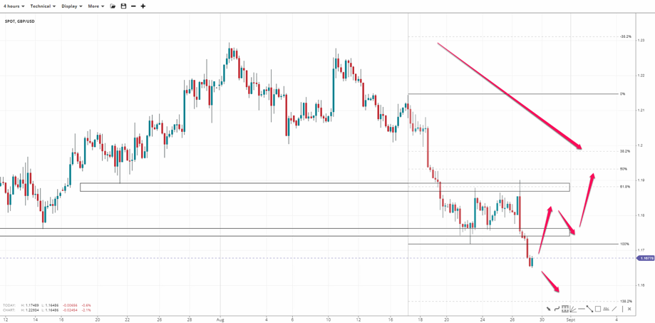 GBP/USD fell through 1,1650 in the early hours and could see a retest of 1,1720 before sliding towards the round 1,1600 handle. Lack of demand there would open the door to the 138.2% Fibonacci extension of the 1,2150- 1,1720 leg near 1,1550. A solid rally towards 1,1900 might print an inverse head-and-shoulders.