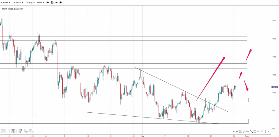 UKBRENTOIL is trading in triple digits again. Above the local support of 97,50 prices could meet the next batch of sell orders near 108,00. Increasing strength would expose 111,50. If crude succumbs back into double-digit territories, 90,00 might be revisited after the swing low of 97,50 is lost.