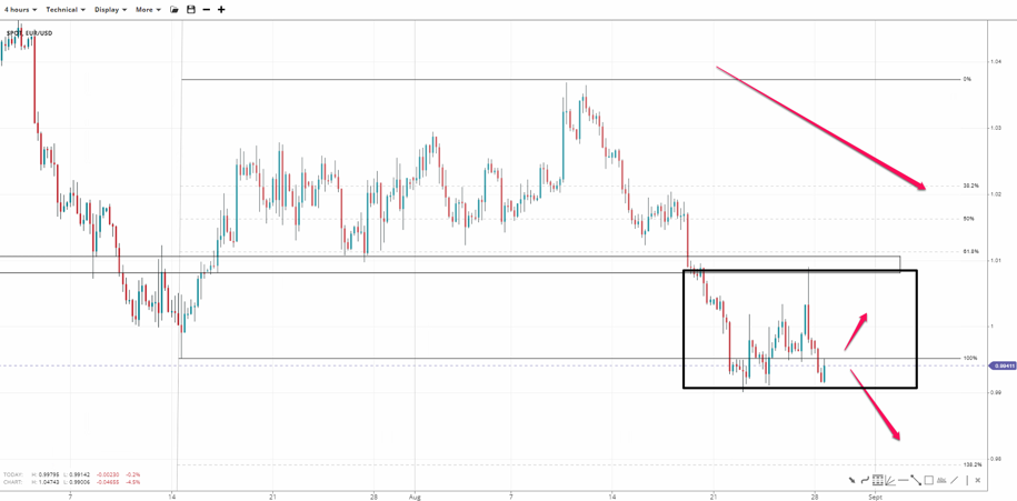 EUR/USD crashed to 0.9900 before pumping to 1.0090, where it saw bulls in reverse mode sending prices back below parity. If volatility continues to thicken a range could form but the top would be at risk of remaining below 1,0000. In the event bearish momentum rises, the 138.2% Fibonacci extension of the 1,0380-0,9950 leg lies near 0,9800.