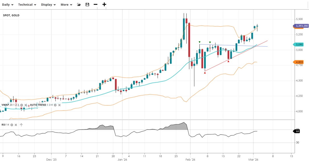 Brent Crude has seen an aggressive breakout and is trading in a highly impulsive bullish phase. While the trend is strongly upward, momentum indicators have entered overbought territory, suggesting the market is significantly stretched relative to its mean.