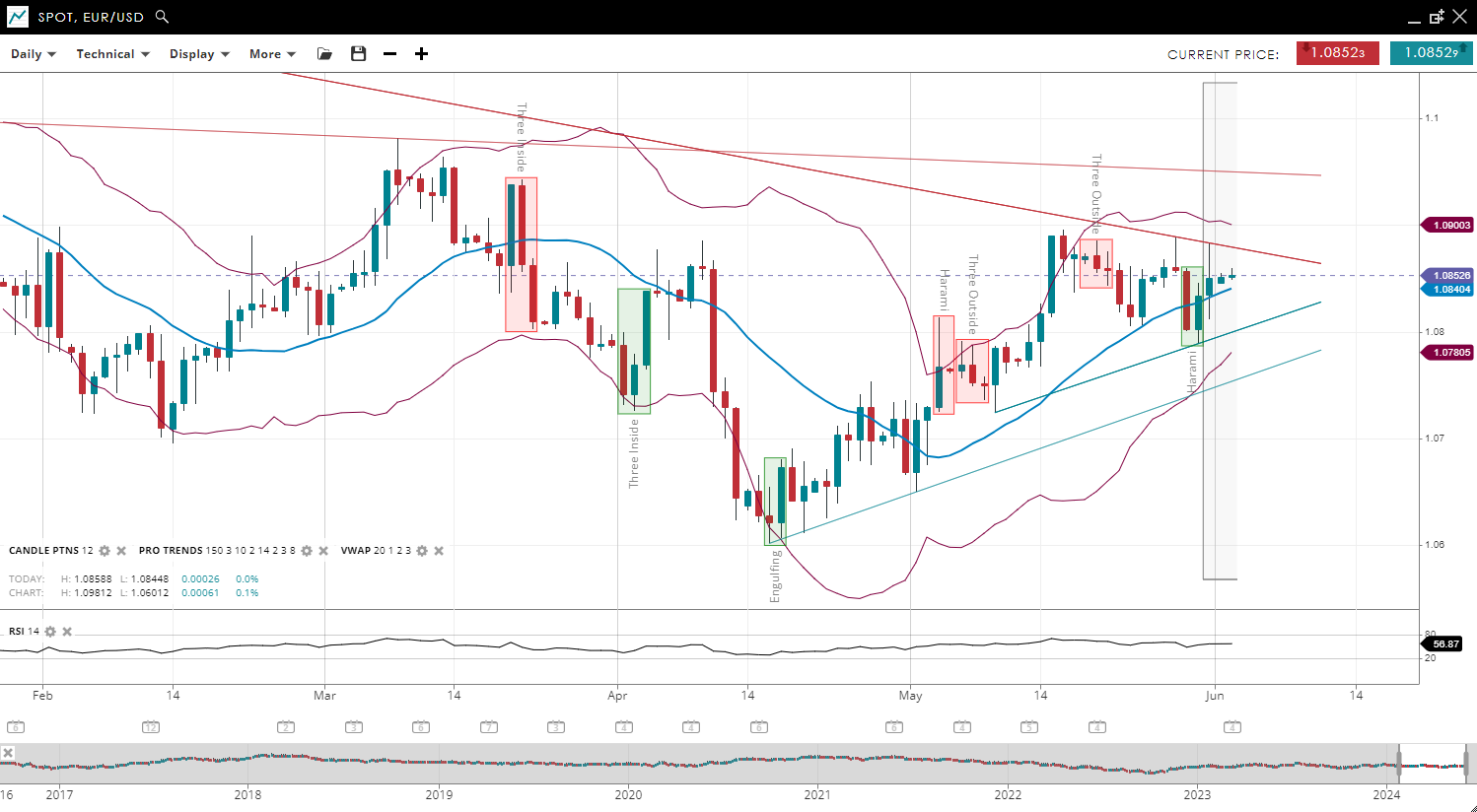 NOTE: These charts use the ‘Pro Trading Tools’ available on the SpreadEx trading platform. To use them, log in to your and click ‘Technical’ from the menu on any chart.
