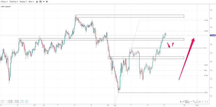 USD/JPY bulls are in clear control of the pair’s direction above the 135.50 mark. The price has extended near the 38.2% Fibonacci at 137.50 with no major pullback in place. We expect bears to push the pair down towards 136.50 before the trend continues to the 138,00 mark. A break above would eye the 138.80 Fibonacci and the previous top of 139.50. If bullsish appetite sours, the 134.60 could be tested.