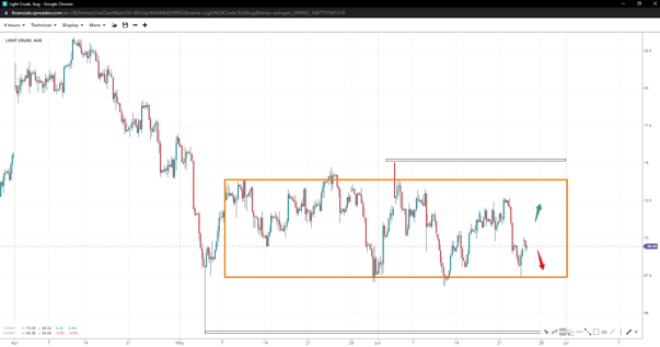 Crude oil is now on a short-term upside following a bounce off the triple bottom at 67.50 but the 70 acts as resistance prior to 72.5. If bulls take control of the round support, an attempt at the next resistance might expose 75, while a failure might open the door to 63.60.